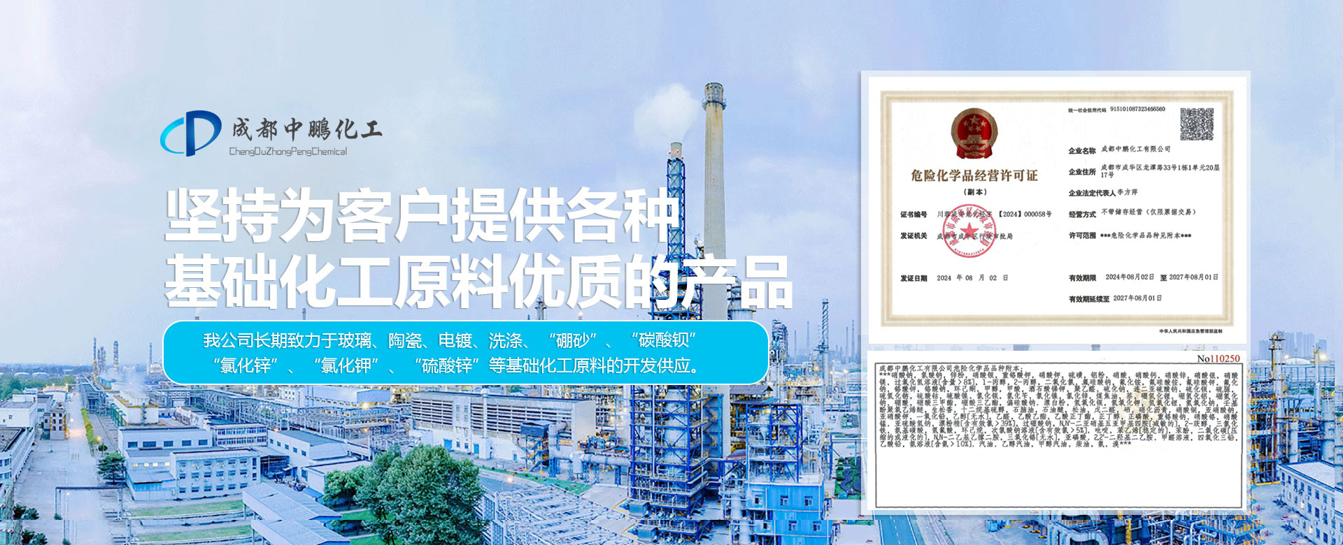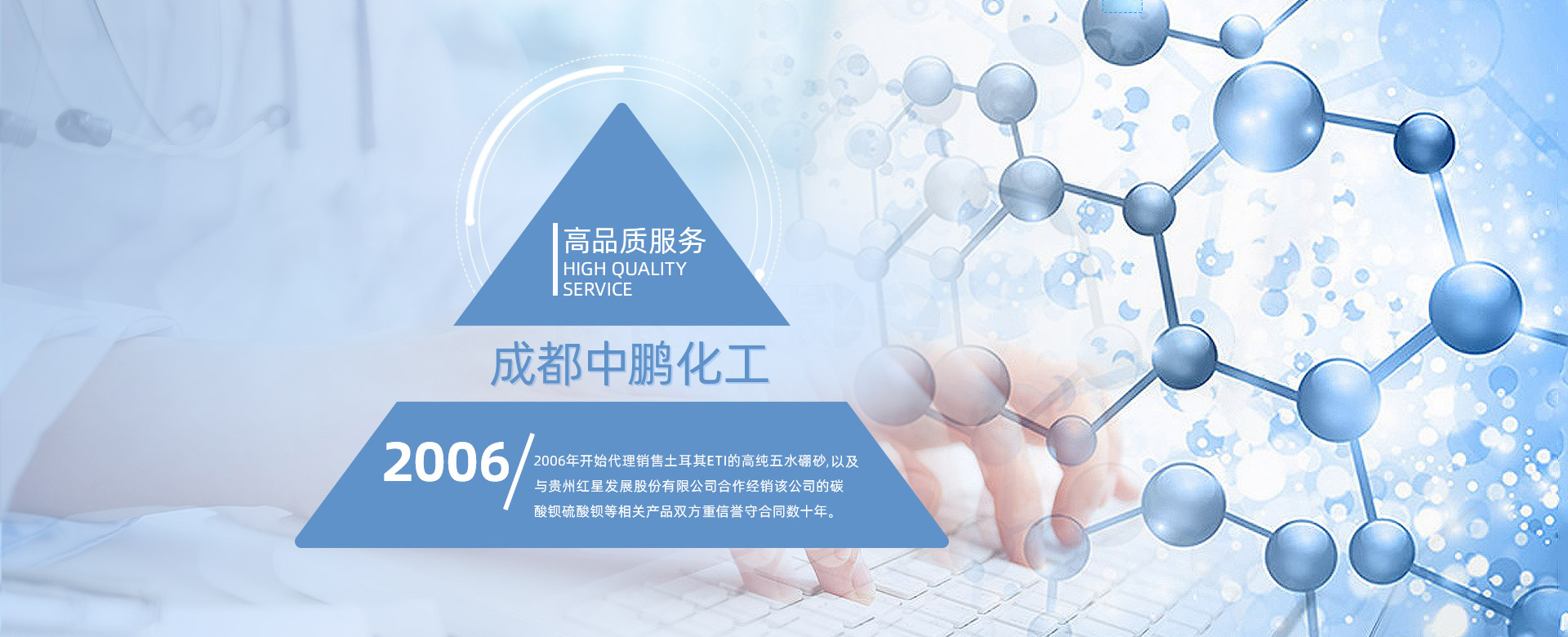 成都中鵬化工有限公司成立于2001年,位于成都市新都區(qū)木蘭木名商塑化城2棟11號,公司成立16年以來,一直堅持為客戶提供各種基礎化工原料的產(chǎn)品。我公司長期對于玻璃、陶瓷、電鍍、洗滌、“硼砂”、“碳酸鋇”、“氯化鋅”、“氯化鉀”、“硫酸鋅”等基礎化工原料的開發(fā)供應。 公司現(xiàn)在員工上百人,在全國擁有多個營銷體系和完善的售后服務體系,長期以來,通過為客戶提供各種基礎化工原料的產(chǎn)品,形成了良好的合作關系...